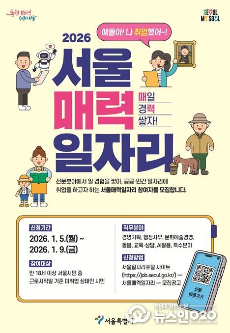 (뉴스인020 = 김성길 기자) 서울시는 직무교육과 실제 일 경험을 통해 민간 취업으로 연계하는 대표 디딤돌 일자리 사업인 ‘서울 매력일자리’를 2026년 총 3,600명 규모로 확대 운영한다.
