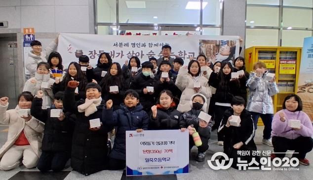(뉴스인020 = 김성길 기자) 일죽면행정복지센터는 일죽초등학교 3~4학년 학생들이 서일농원과 함께 진행한 전통된장 만들기 프로그램에서 직접 만든 된장(1팩 350g) 70개를 일죽면 지역사회에 기부하며 따뜻한 나눔을 실천했다고 밝혔다.