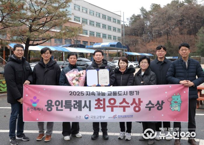 (뉴스인020 = 김성길 기자) 용인특례시는 국토교통부가 주관한 ‘2025년 지속가능 교통도시 평가’에서 최우수상을 수상했다고 24일 밝혔다.