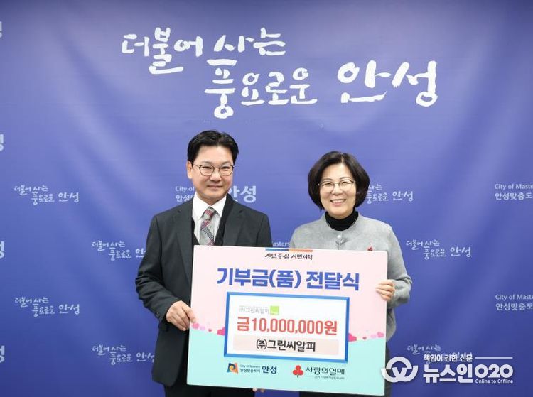 (뉴스인020 = 김성길 기자) 안성시는 지난 12월 24일, ㈜그린씨알피로부터 1,000만 원 기부금을 전달받았다고 밝혔다.