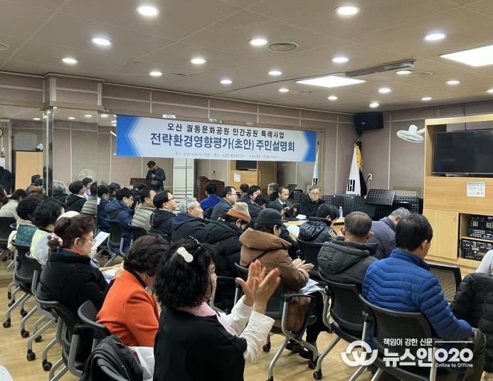 (뉴스인020 = 김성길 기자) 오산시 남촌동 행정복지센터는 지난 24일 궐동문화공원 조성사업과 관련한 환경영향평가 주민설명회를 개최하고, 지역 주민 60여 명을 대상으로 사업 내용을 공유하며 의견을 수렴했다고 밝혔다.