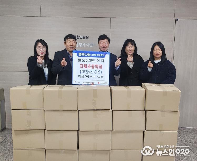 (뉴스인020 = 김성길 기자) 연말을 맞아 평택 지제초등학교 학부모회가 지난 24일, 따뜻한 마음 담은 라면 20박스를 평택시 세교동 행정복지센터에 기부했다.
