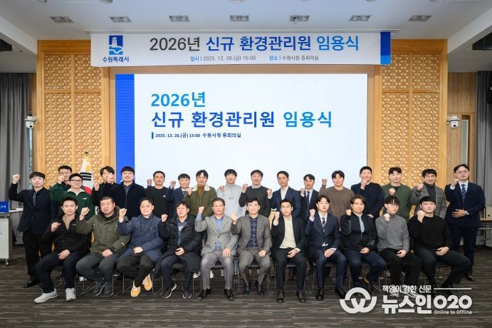 (뉴스인020 = 기자) 수원특례시가 26일 시청 중회의실에서 2026년 신규 환경관리원 임용식을 열고, 신규 임용자 21명에게 임용장을 수여했다.