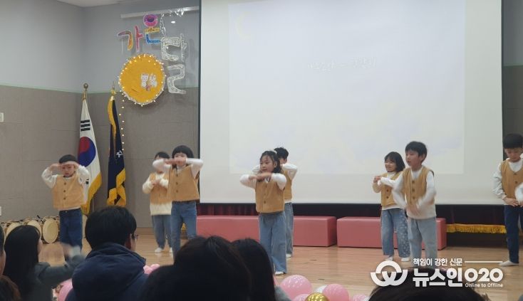 1부에서는 가온1·2반 유아들이 준비한 오카리나 연주와 우리나라 놀이를 주제로 한 놀이 뮤지컬 공연이 펼쳐졌다. 사물놀이 ‘농악’, 소고춤 ‘청개구리 타령’, 전래놀이를 접목한 무대를 통해 유아들은 놀이 속에서 배우고 성장한 경험을 자신감 있게 표현했다.
