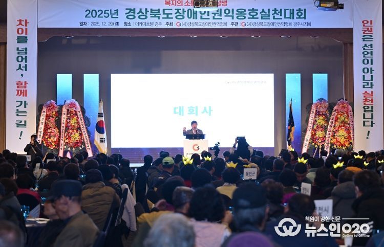 (뉴스인020 = 김성길 기자) 경상북도는 29일 경주 더케이호텔에서 경상북도장애인권익협회 주최로 장애인 회원과 자원봉사자 등 1,000여 명이 참석한 가운데 ‘2025년 경상북도 장애인 권익옹호 실천대회’를 성황리에 개최했다.