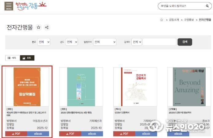 (뉴스인020 = 김성길 기자) 서울 강동구는 강동구 아동‧청소년이 창작한 글과 그림 작품을 전자 간행물로 제작해 청소년 예술 자료 보관소(아카이브) 형태로 조성한다고 30일 밝혔다.