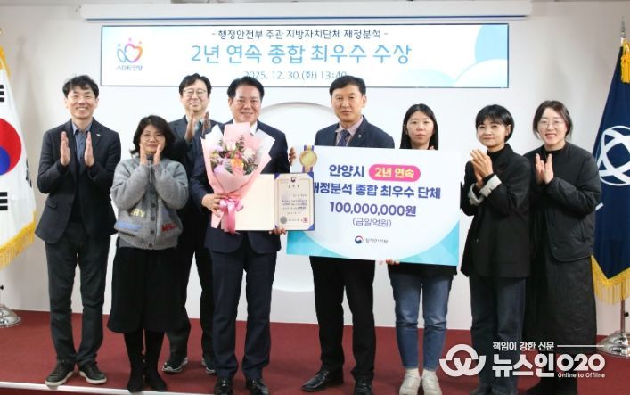 (뉴스인020 = 김성길 기자) 안양시는 행정안전부에서 실시한‘2025년(2024 회계연도) 지방재정분석’에서 종합점수 ‘가’등급을 받아 2년 연속‘종합 최우수’지자체로 선정됐다.