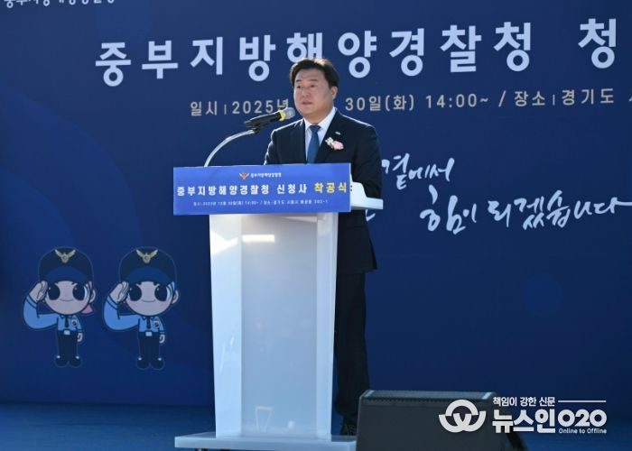 (뉴스인020 = 김성길 기자) 시흥시 배곧동에 중부지방해양경찰청이 들어선다. 12월 30일 배곧동 302-1번지 일원 신청사 건립부지에서 ‘중부지방해양경찰청 신청사 착공식’이 열렸다.