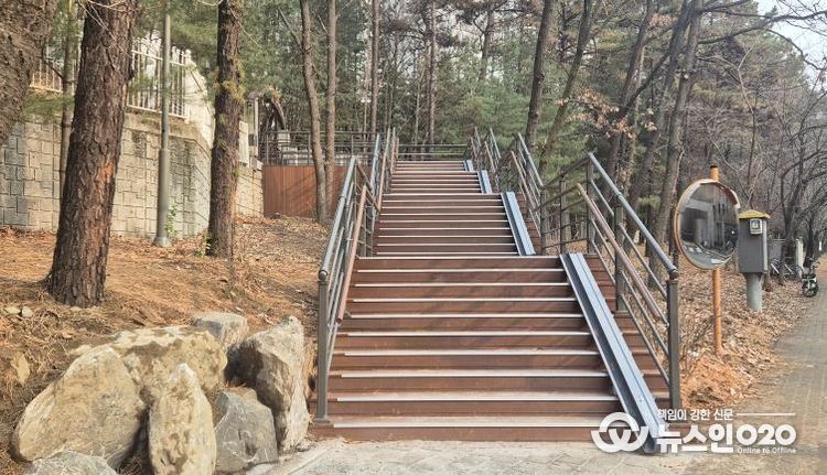 구는 기존 계단을 철거한 뒤 폭 3m, 길이 28m의 계단을 설치했다. 계단에 안전 손잡이와 자전거 경사로 등 시설도 새로 만들었다.