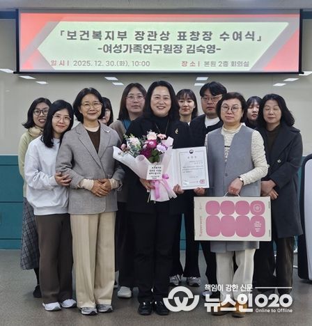 (뉴스인020 = 김성길 기자) 강원특별자치도여성가족연구원 김숙영 원장이 지역사회보장계획 유공자로 선정되어 보건복지부 장관상을 수상했다.