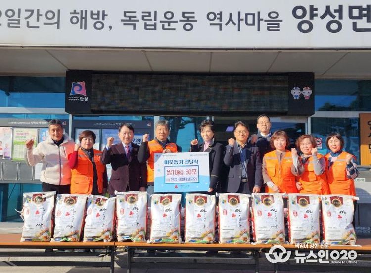 (뉴스인020 = 김성길 기자) 안성 에벤에셀교회에서는 지난 30일 양성면지역사회보장협의체에 10kg 쌀 50포를 기탁했다.