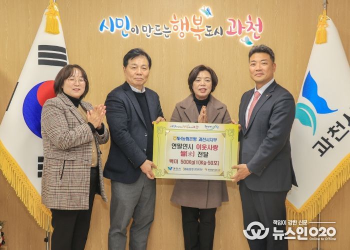 (뉴스인020 = 김성길 기자) 과천시는 연말연시를 맞아 NH농협은행 과천시지부가 지역 내 도움이 필요한 이웃을 위해 쌀 10kg 50포를 기부했다고 31일 밝혔다.