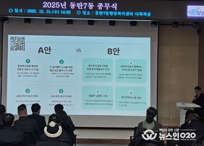 (뉴스인020 = 김성길 기자) 화성특례시 동탄7동은 12월 31일, 동탄7동 행정복지센터 다목적실에서 ‘2025년 종무식’을 열고 한 해를 마무리했다.
