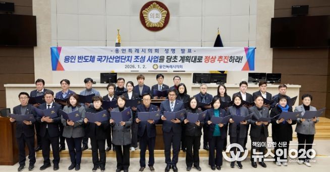 (뉴스인020 = 김성길 기자) 용인특례시의회는 2일 본회의장에서 ‘국가 경쟁력 강화 및 첨단 전략산업 육성을 위한 용인 반도체 국가산업단지 조성 사업 관철 성명서’를 발표하고, 사업의 당초 계획에 따른 정상 추진을 정부에 강력히 촉구했다.