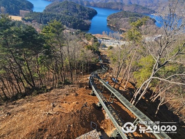 지난해 6월 상수원보호구역 행위허가 등 각종 인‧허가 절차를 완료하고, 7월 토목‧건축, 전기 등에 대한 공사에 착수해 현재까지 토목기초공사와 지주 및 레일 설치공사, 상하부 승하차장 조성에 이르기까지 95%의 공정률을 보이고 있다.