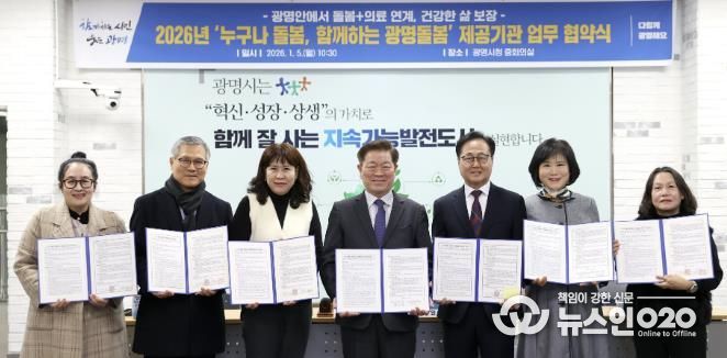 시는 5일 시청 중회의실에서 관내 한의원, 의원, 요양센터 등 41개 돌봄서비스 기관과 ‘누구나 돌봄, 함께하는 광명돌봄’ 서비스 업무협약을 체결했다.