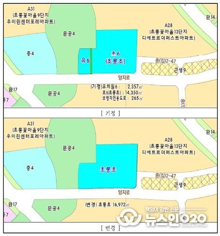 이에 따라 초롱초등학교 부지 면적은 기존 14,644㎡에서 유치원 부지 2,622㎡를 포함한 총 16,972㎡로 확대됐다. 파주교육지원청은 향후 학교와의 협의를 통해 교실 증축 등 실질적인 과밀 해소를 위한 시설 확충을 단계적으로 추진할 계획이다.