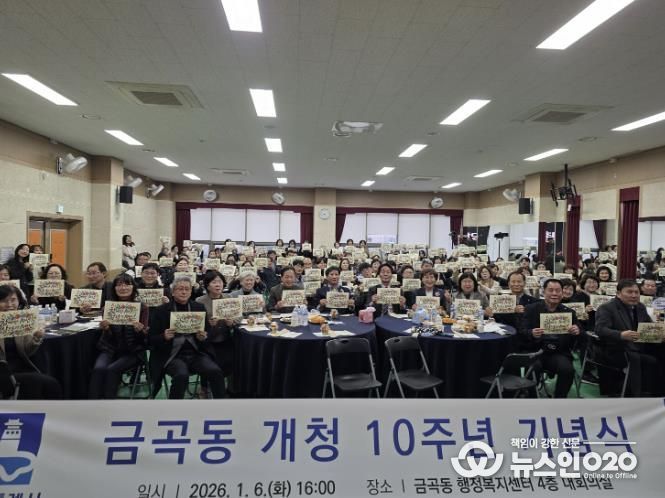 (뉴스인020 = 기자) 2026년 개청 10주년을 맞은 권선구 금곡동은 지난 6일 지역구 의원과 주민 등 100여 명이 참석한 가운데 주민자치회 및 통장협의회와 함께 10주년 기념행사를 개최했다.
