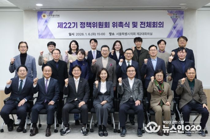 (뉴스인020 = 김성길 기자) 서울특별시의회(의장 최호정, 서초4, 국민의힘)는 6일 정책위원회 위촉식과 전체 회의를 개최하여 제22기 정책위원회를 정식 출범시켰다.