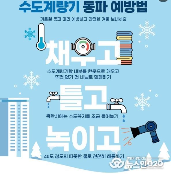 (뉴스인020 = 김성길 기자) 경남도는 2026년 3월 15일까지 추진 중인 '’25~’26년 겨울철 수도시설 동파 대책'을 안정적으로 운영하고 있으며, 겨울철 종료 시점까지 시군과 협력해 대응체계를 유지·강화함으로써 동파 피해와 도민 불편을 최소화하겠다고 밝혔다.