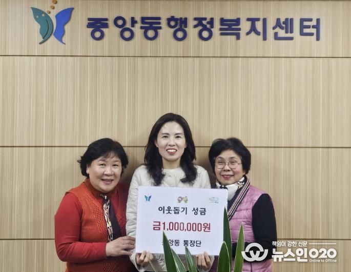 중앙동 통장단은 이번 성금 기탁뿐만 아니라, 평소에도 지역사회를 위한 다양한 봉사활동에 앞장서 왔다. 지난 동지에는 직접 팥죽을 쑤어 어르신들께 전달하는 ‘이웃사랑 팥죽 나눔’ 행사를 진행했으며, 관내 복지관 등에서 정기적인 배식 봉사에도 참여하고 있다.