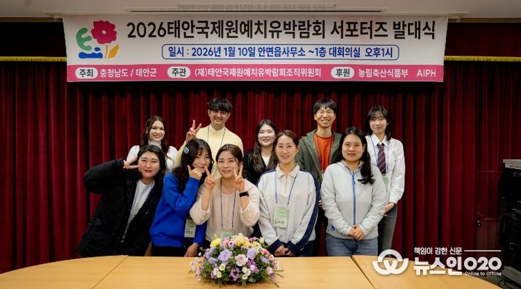 (뉴스인020 = 김성길 기자) 태안국제원예치유박람회 조직위원회는 1월 10일 오후 1시 태안 안면도 일원에서 ‘태안국제원예치유박람회 서포터즈 발대식’을 열고 시민 참여형 홍보 활동을 본격적으로 시작한다고 밝혔다.