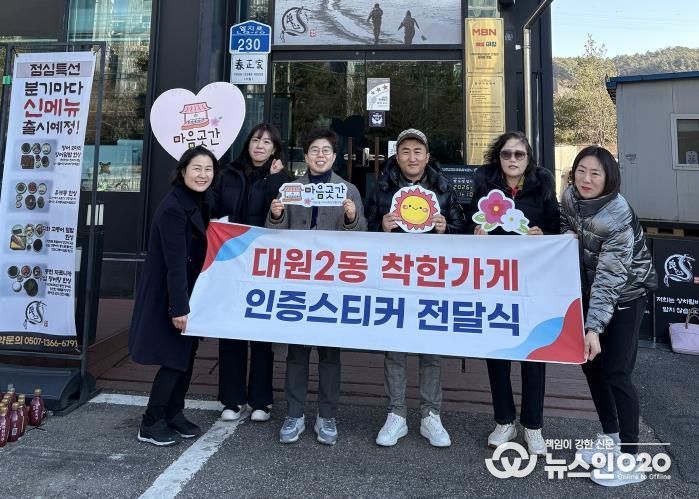 (뉴스인020 = 김성길 기자) 오산시 대원2동 행정복지센터는 지난 13일, 2026년 첫 번째 착한가게로 신규 선정된 ‘양심장어 오산청호점(엘지로 230)’에서 ‘착한날개(착한가게) 인증스티커 전달식’을 개최했다고 밝혔다.