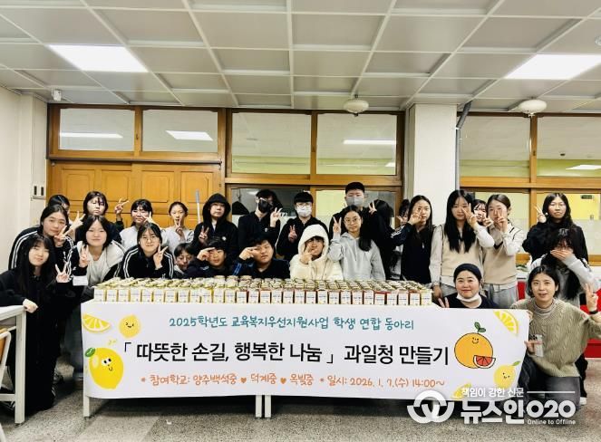 완성된 과일청은 1월 13일, 각 학교를 대표한 학생들과 교육복지사가 양주 백석읍 행정복지센터를 통해 겨울철 건강 취약계층 등 지역사회 이웃들에게 전달했다. 활동 이후에는 소감 나눔 및 만족도 조사 시간을 통해 학교 간 경험을 공유하고, 연합 활동의 의미를 되새기는 시간을 가졌다.