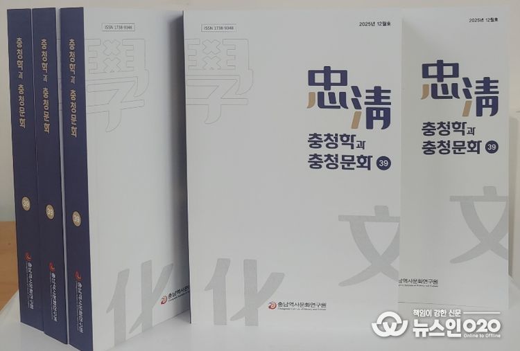 (뉴스인020 = 김성길 기자) 충남역사문화연구원(원장 장기승)은 한국연구재단 등재학술지‘충청학과 충청문화’ 제39집을 발간했다.‘충청학과 충청문화’는 2002년 창간 이후 20여 년간 360여 편의 연구 성과를 축적해 온 충청권 대표 지역학 학술지다.