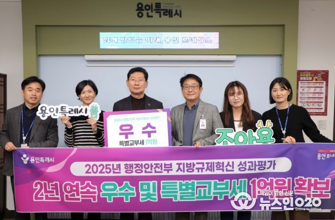 (뉴스인020 = 김성길 기자) 용인특례시는 지난해에 이어 ‘지방규제혁신 성과평가’에서 우수 기관으로 선정돼 특별교부세 1억 원을 확보했다고 16일 밝혔다.