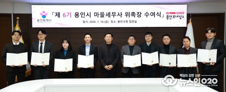(뉴스인020 = 김성길 기자) 용인특례시는 16일 시청 접견실에서 ‘제6기 마을세무사’ 위촉식을 가졌다고 밝혔다.