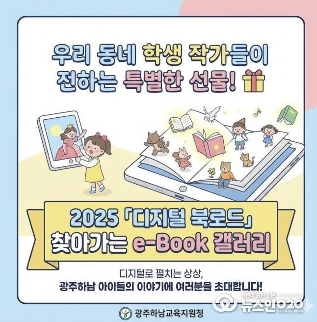 (뉴스인020 = 김성길 기자) 광주하남교육지원청은 1월 12일부터 2월 20일까지 관내 공공도서관 5개 기관을 순회하며 학생 주도 디지털 창작물 전시회인 '찾아가는 e-Book 갤러리'를 운영한다.