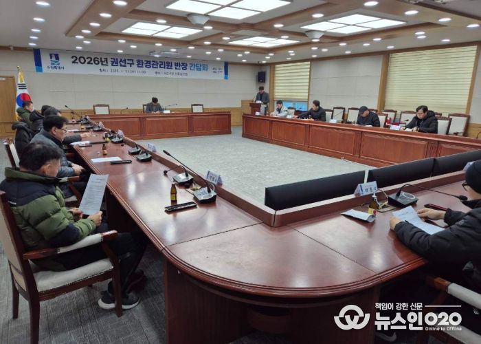 (뉴스인020 = 기자) 권선구 환경위생과는 최일선에서 일하는 환경관리원들을 격려하고 애로사항을 청취하고자 ‘환경관리원 간담회’를 2026년 1월 21일 오전 11시에 개최했다.