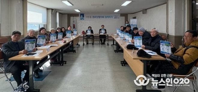 (뉴스인020 = 기자) 지난 20일, 수원시 권선구 서둔동은 관내 15개소 경로당 회장단이 참석한 가운데 1월 경로당협의회 정기회의를 개최했다.