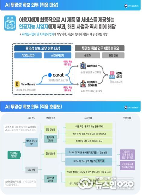 (뉴스인020 = 김나현 기자) 과학기술정보통신부는 1월 22일'인공지능 발전과 신뢰 기반 조성 등에 관한 기본법' ‘인공지능 기본법’)상 투명성 확보 의무(제31조)의 구체적인 이행 방안을 담은'인공지능 투명성 확보 안내 지침(가이드라인)'을 공개했다.