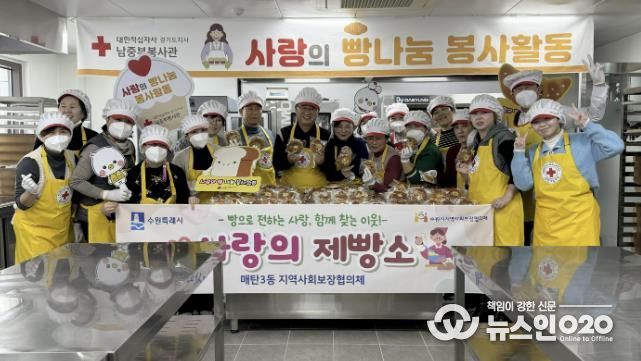 (뉴스인020 = 기자) 지난 1월 21일, 매탄3동 지역사회보장협의체는 대한적십자사 경기도지사에서 관내 저소득 어르신을 위한 제빵 봉사 및 나눔 활동을 실시했다. 이번 행사는 지역사회보장협의체 위원들이 직접 정성껏 만든 빵을 나누며 어르신들의 건강을 살피고, 이웃 간 따뜻한 정을 나누기 위해 마련됐다.