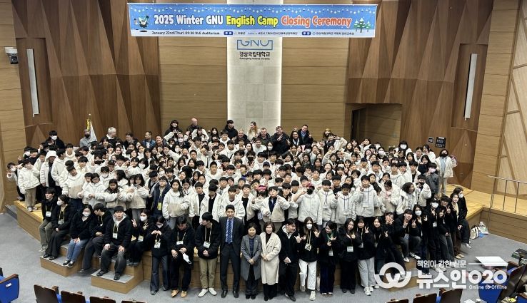(뉴스인020 = 김성길 기자) 경상국립대학교(GNU·총장 권진회)는 1월 22일 오전 9시 30분 GNU국제관 파이어니어 오디토리엄에서 (재)사천시 인재육성재단과 하동군청 위탁으로 운영한 ‘2025 겨울 GNU 영어캠프’ 수료식을 개최하고, 11박 12일간의 캠프 일정을 성공적으로 마무리했다.