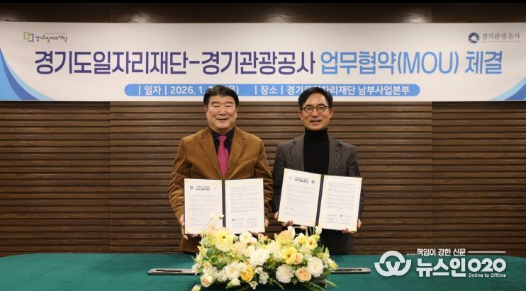 (뉴스인020 = 김성길 기자) 경기도일자리재단과 경기관광공사는 22일 경기도일자리재단 남부사업본부에서 ‘경기북부 관광 활성화 및 유연근무 확산을 위한 업무협약(MOU)’을 체결했다.
