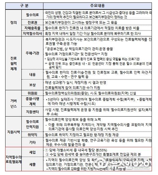 특히, 법 통과 이후부터는 복지부와 시‧도 간 ‘(가칭)지역필수의료법 정례협의체’를 구성하여, 필수‧공공의료 투자 방안과 하위법령 제정 등 구체적인 실행계획을 심도 있게 논의할 계획이다.
