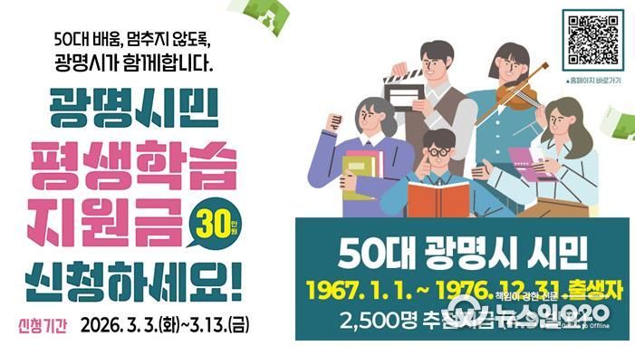 (뉴스인020 = 김성길 기자) 광명시가 50대 중장년 시민의 배움 기본권 보장을 위해 올해도 평생학습지원금 지원을 이어간다.