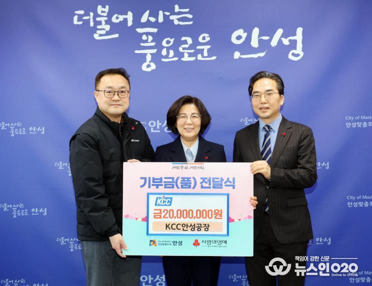 (뉴스인020 = 김성길 기자) 안성시는 1월 19일 KCC안성공장으로부터 기부금 2,000만 원을 전달받았다고 밝혔다.