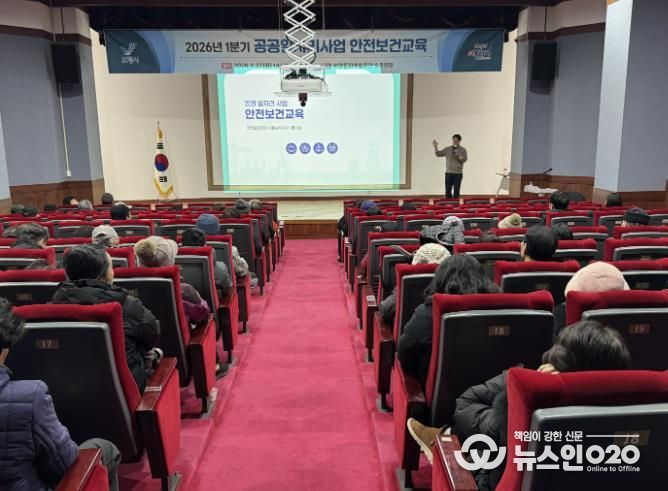 (뉴스인020 = 김성길 기자) 보령시는 지난 27일 보령문화예술회관 소공연장에서 공공일자리사업 참여자와 관계 공무원 등 110명을 대상으로 ‘2026년 1분기 공공일자리사업 안전보건교육’을 실시했다.