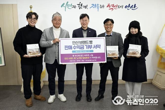 (뉴스인020 = 김성길 기자) 안산시는 지난 27일 시청 시장실에서 안산 브랜드 빵 ‘노적봉 별빛츄리’ 판매 협약업소 대표자들과 공동으로 판매 수익금 기부 서약식을 개최했다고 28일 밝혔다.