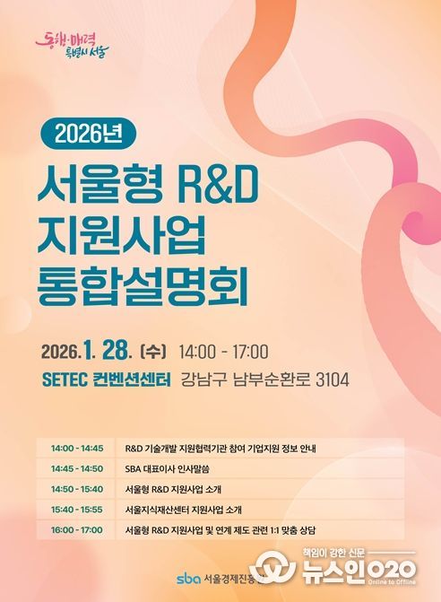한편, 시는 28일 세텍(SETEC)에서 서울 소재 중소·벤처·창업기업 중심 산학연 컨소시엄을 대상으로 한 ‘서울형 R&D 지원사업 통합설명회’를 개최한다. 세부 사업별 자세한 사항은 ‘서울경제진흥원 R&D지원센터’ 누리집에서 확인할 수 있다.