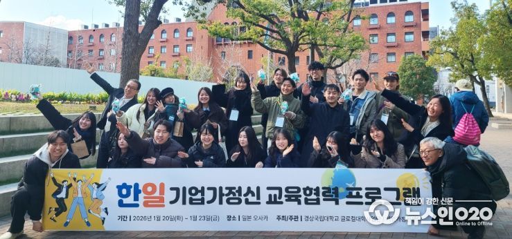 (뉴스인020 = 김성길 기자) 경상국립대학교 기업가정신센터(센터장 김가영 경영학부 교수)는 글로컬대학 사업의 일환으로 1월 20일부터 23일까지 일본 오사카와 교토 일대에서 ‘GNU 한·일 기업가정신 교육협력 프로그램’을 운영했다.
