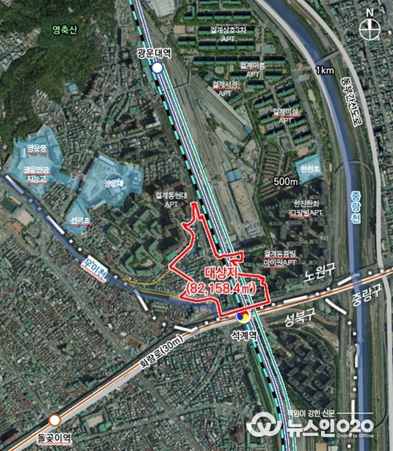 대상지는 지하철 환승역인 석계역 일대로, 역세권 중심기능 및 연결기능 강화를 목표로 82,158㎡ 규모의 지구단위계획구역 신설 계획을 수립했다.