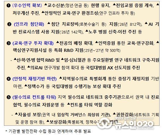 하기 위함으로, 지역 환자가 믿고 찾을 수 있는 진료‧교육‧연구 거점병원으로 육성하기 위한 첫걸음이다. 정부는 이와 함께 지역의사양성법 시행, 필수의료법 제정 등을 통해 지역 의료인력 확보 및 안정적인 재정투자 기반 마련 등 지역의료 강화 정책을 종합적으로 추진하고 있다.