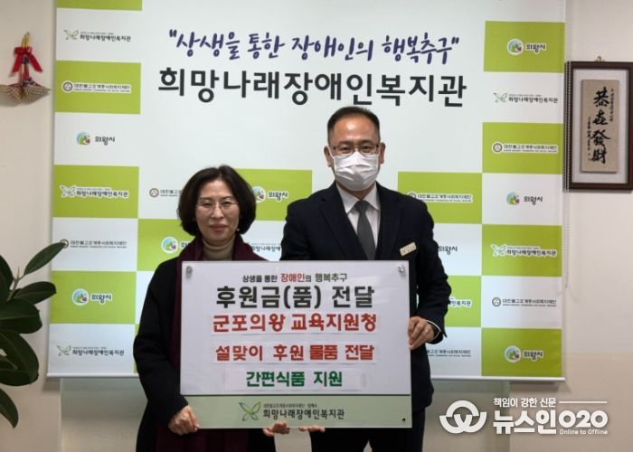 (뉴스인020 = 김성길 기자) 군포의왕교육지원청은 2026년 병오년 설 명절을 맞아 1월 29일 관내 사회복지시설을 방문하여 소외된 이웃에게 온정을 전하는 나눔 활동을 실시했다.