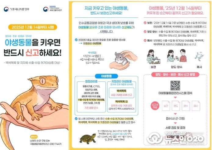 백색목록 해당 여부와 거래·보관 신고는 야생동물 종합관리시스템에서 확인할 수 있다.