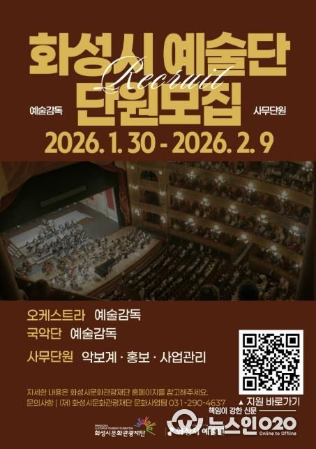 (뉴스인020 = 김성길 기자) (재)화성시문화관광재단은 2026년 ‘화성시 예술단’을 이끌어갈 예술감독과 사무단원을 모집한다.